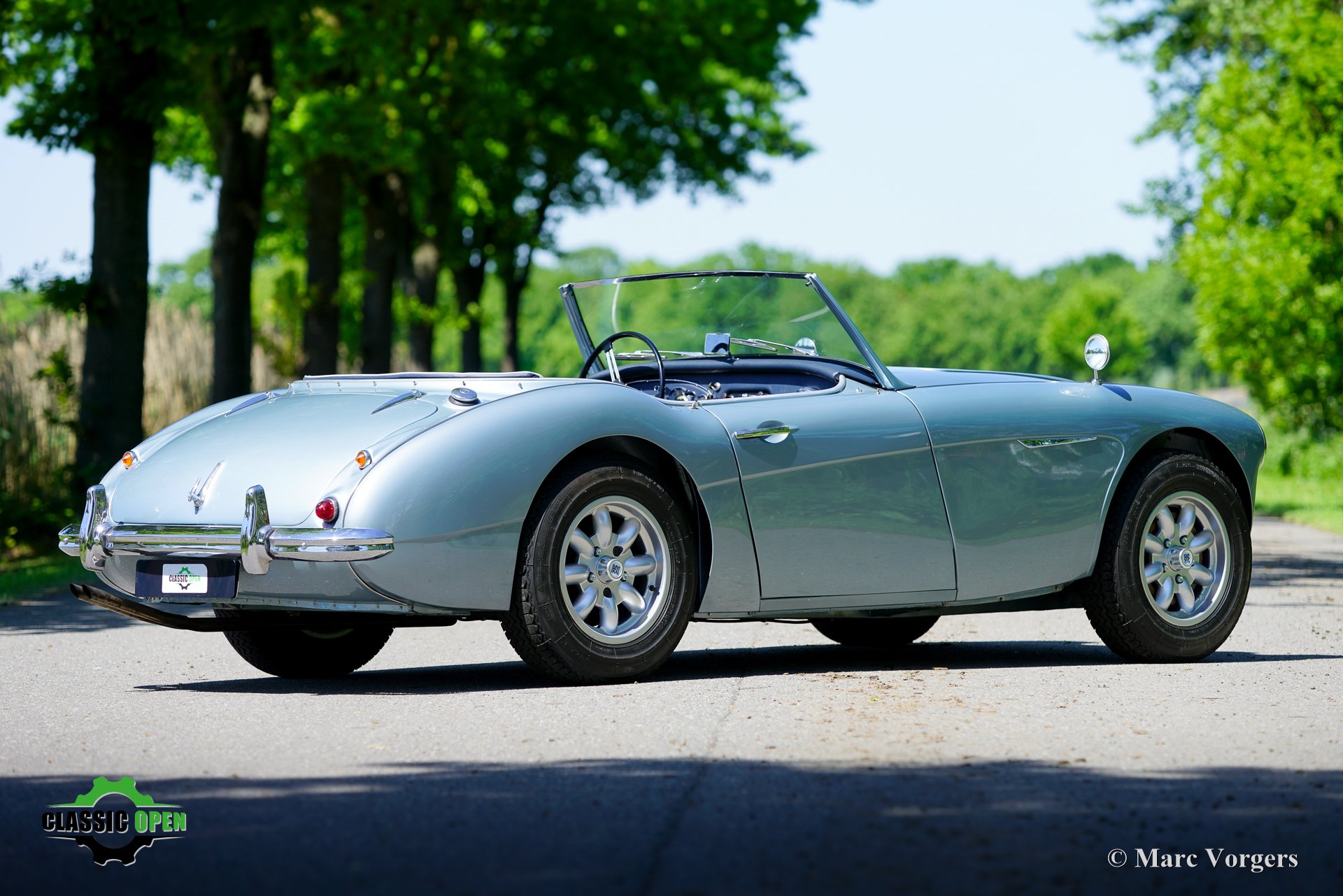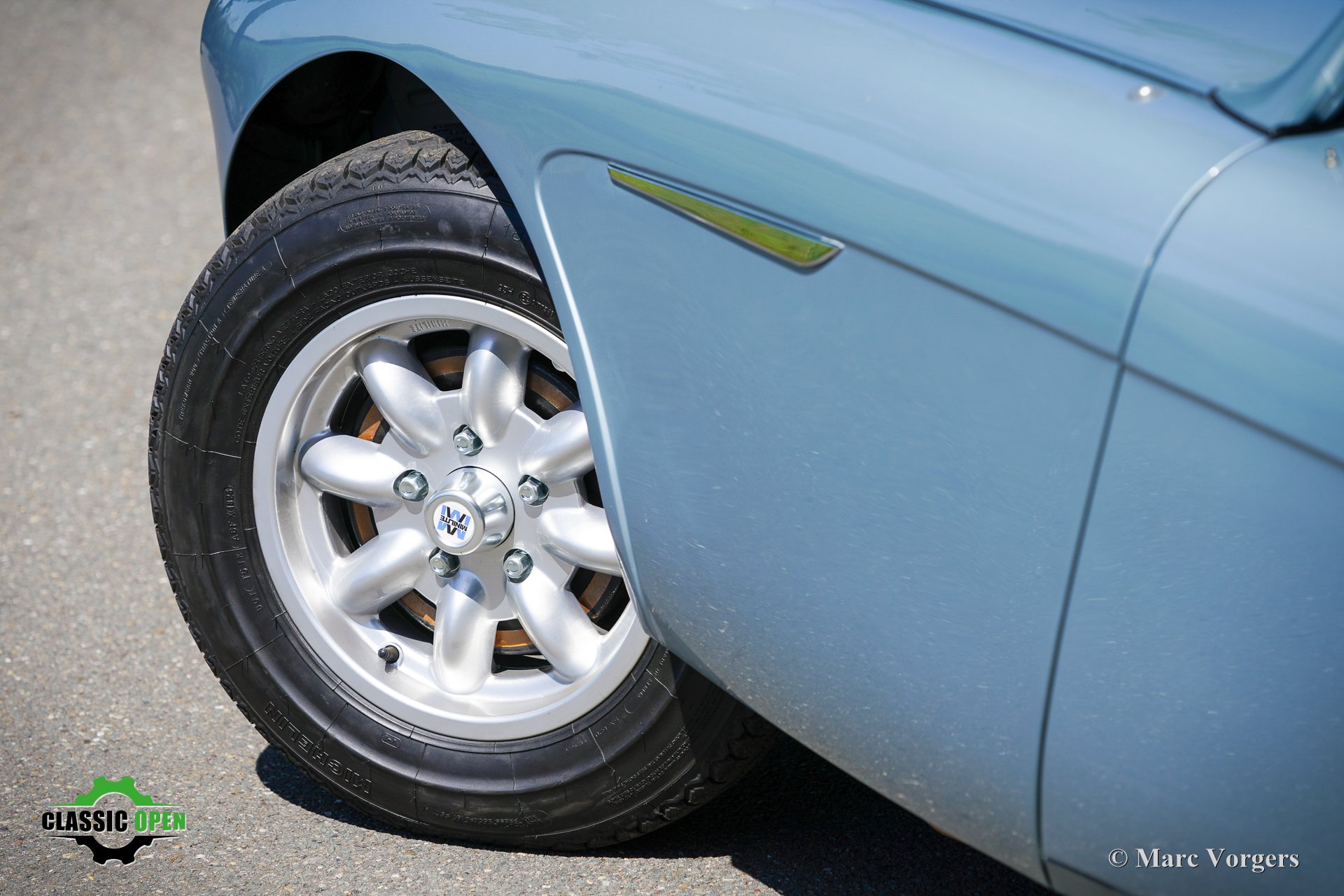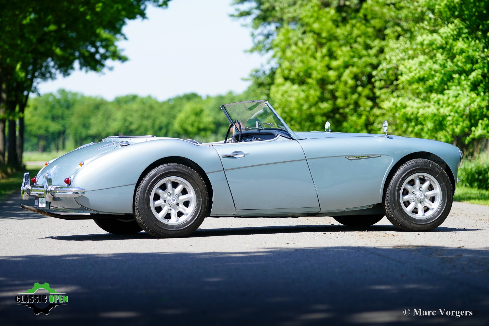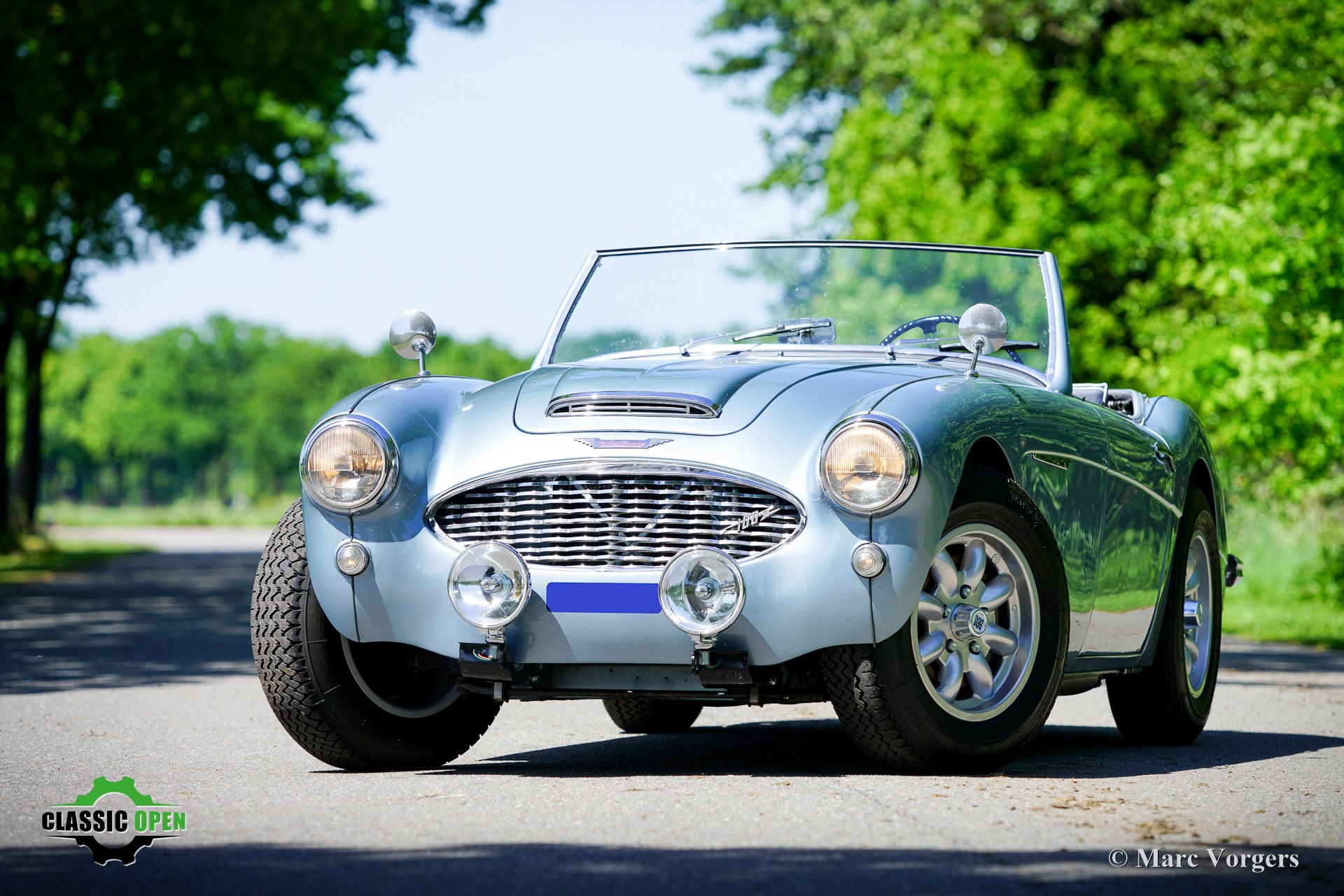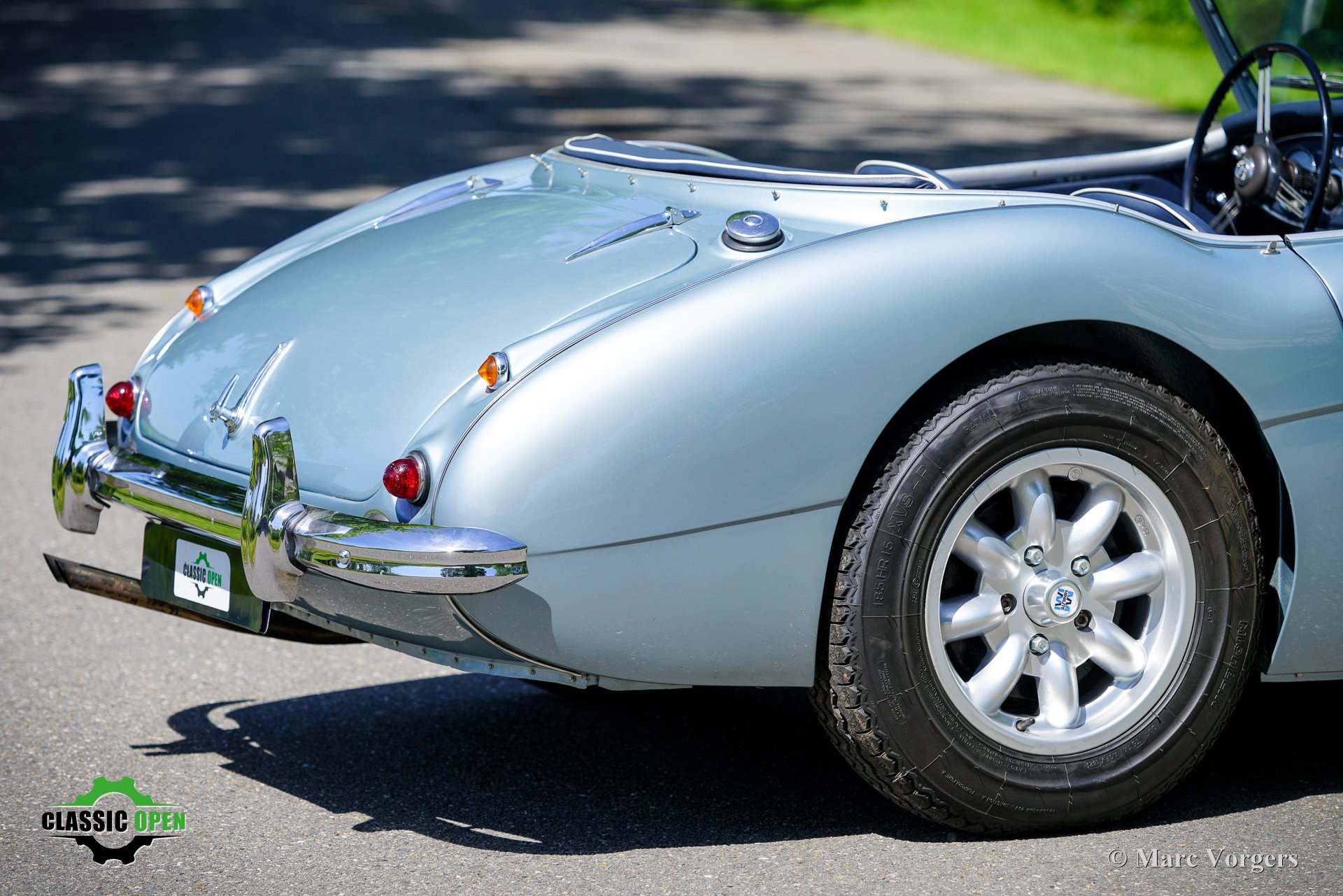 Om de auto een sportievere uitstraling te geven, werd de voorbumper verwijderd. Aan de voorzijde werden extra Lucas SLR700 “flame Thrower”-vérstralers geplaatst en de originele wielen werden vervangen door fraaie robuuste MiniLite-lichtmetalen velgen met Michelin XVS-banden. Dit is een prachtige en subliem rijdende klassieke Austin Healey.