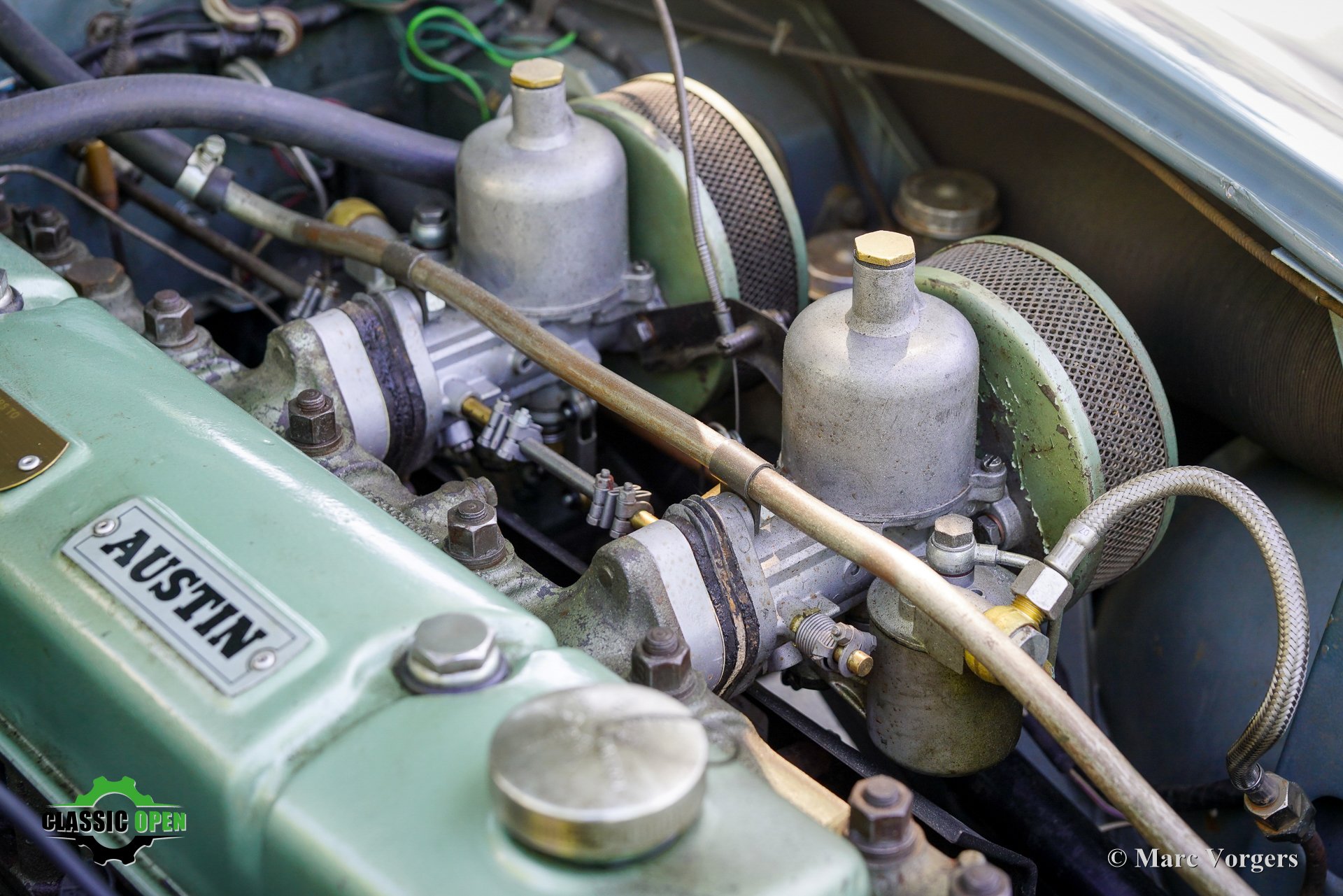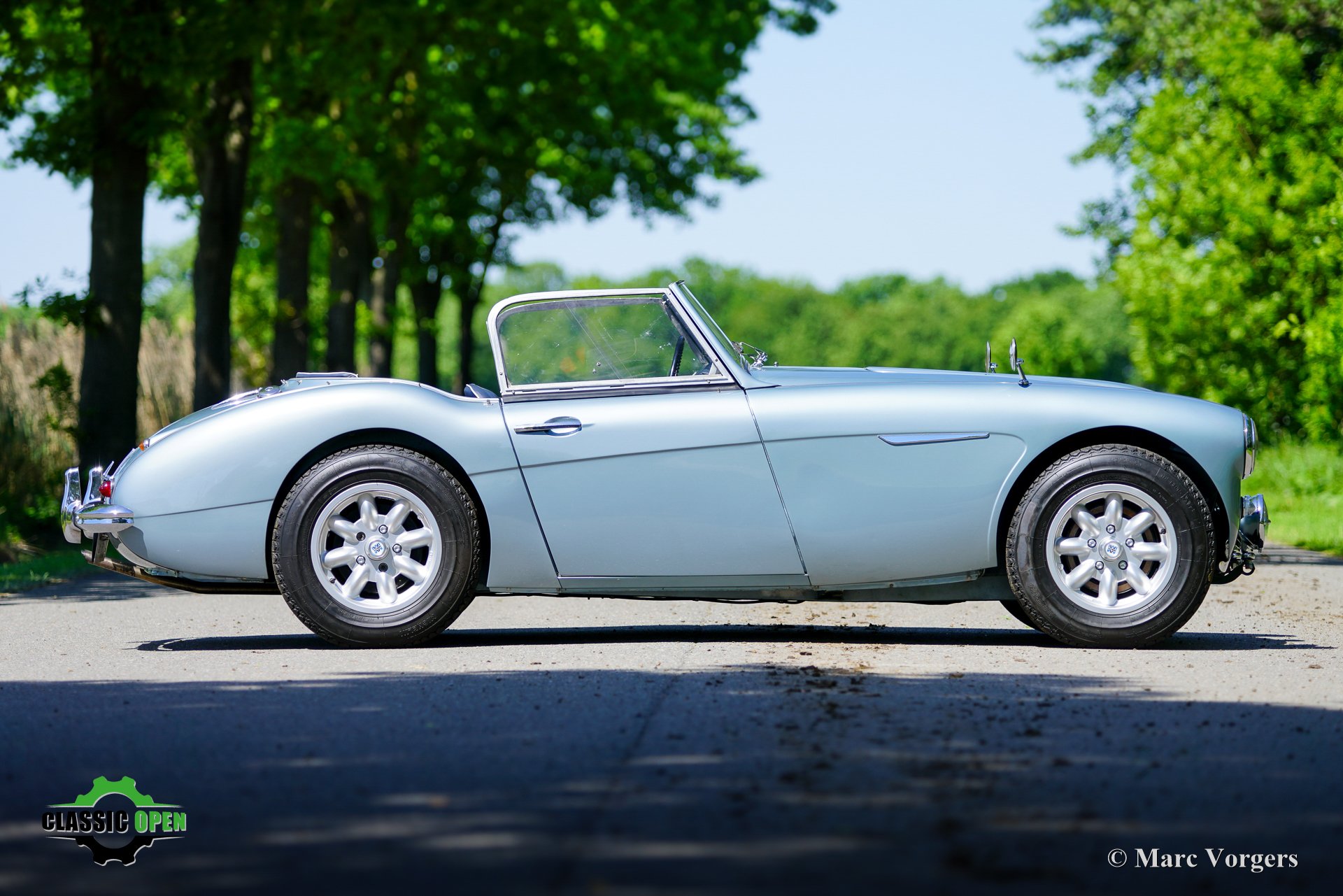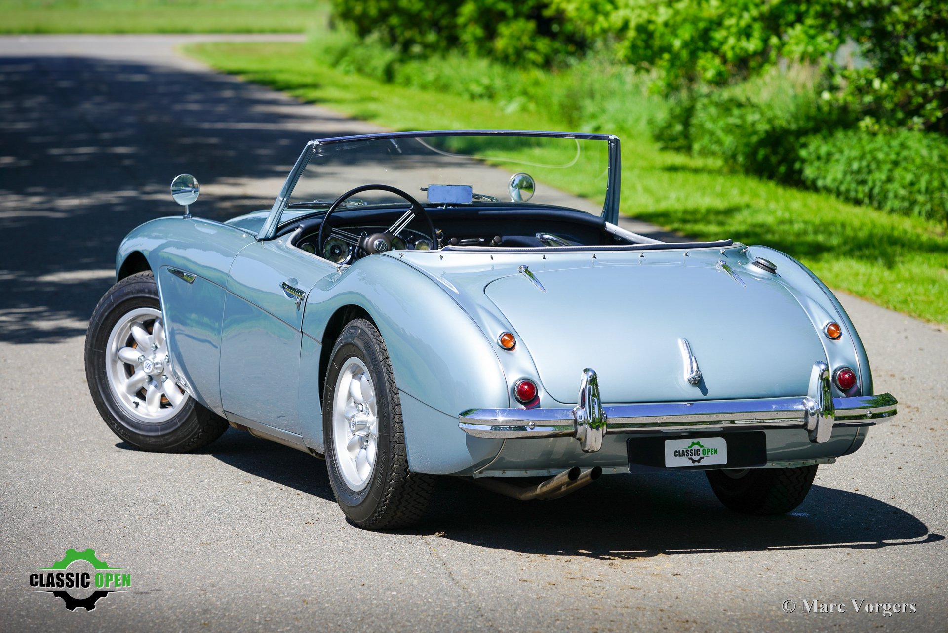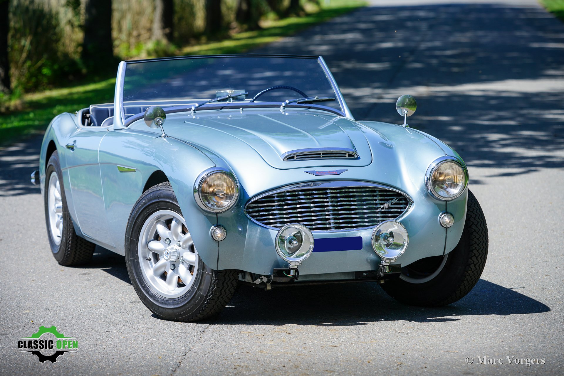 Om de auto een sportievere uitstraling te geven, werd de voorbumper verwijderd. Aan de voorzijde werden extra Lucas SLR700 “flame Thrower”-vérstralers geplaatst en de originele wielen werden vervangen door fraaie robuuste MiniLite-lichtmetalen velgen met Michelin XVS-banden. Dit is een prachtige en subliem rijdende klassieke Austin Healey.