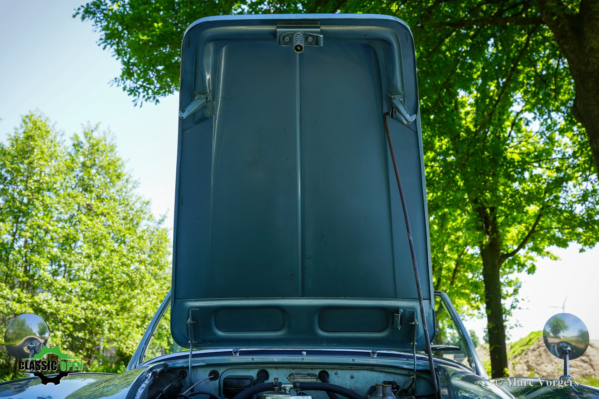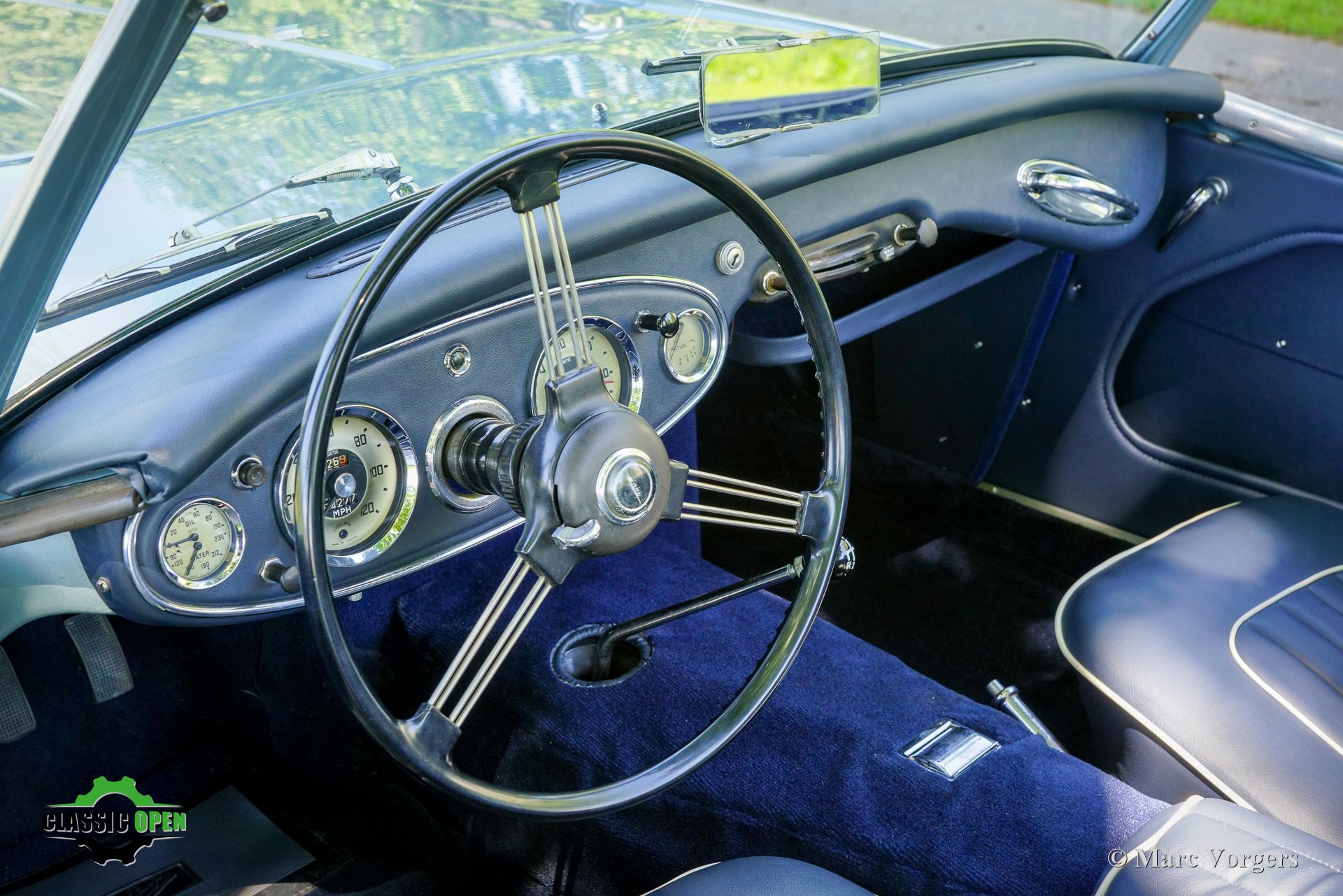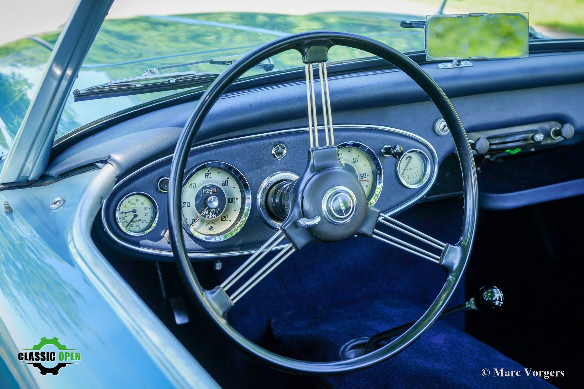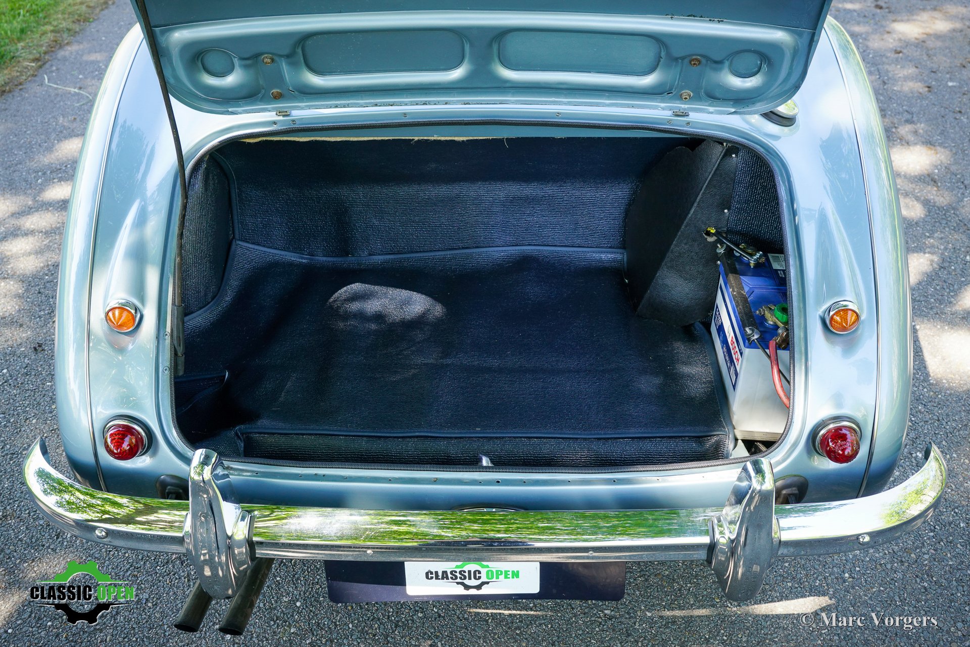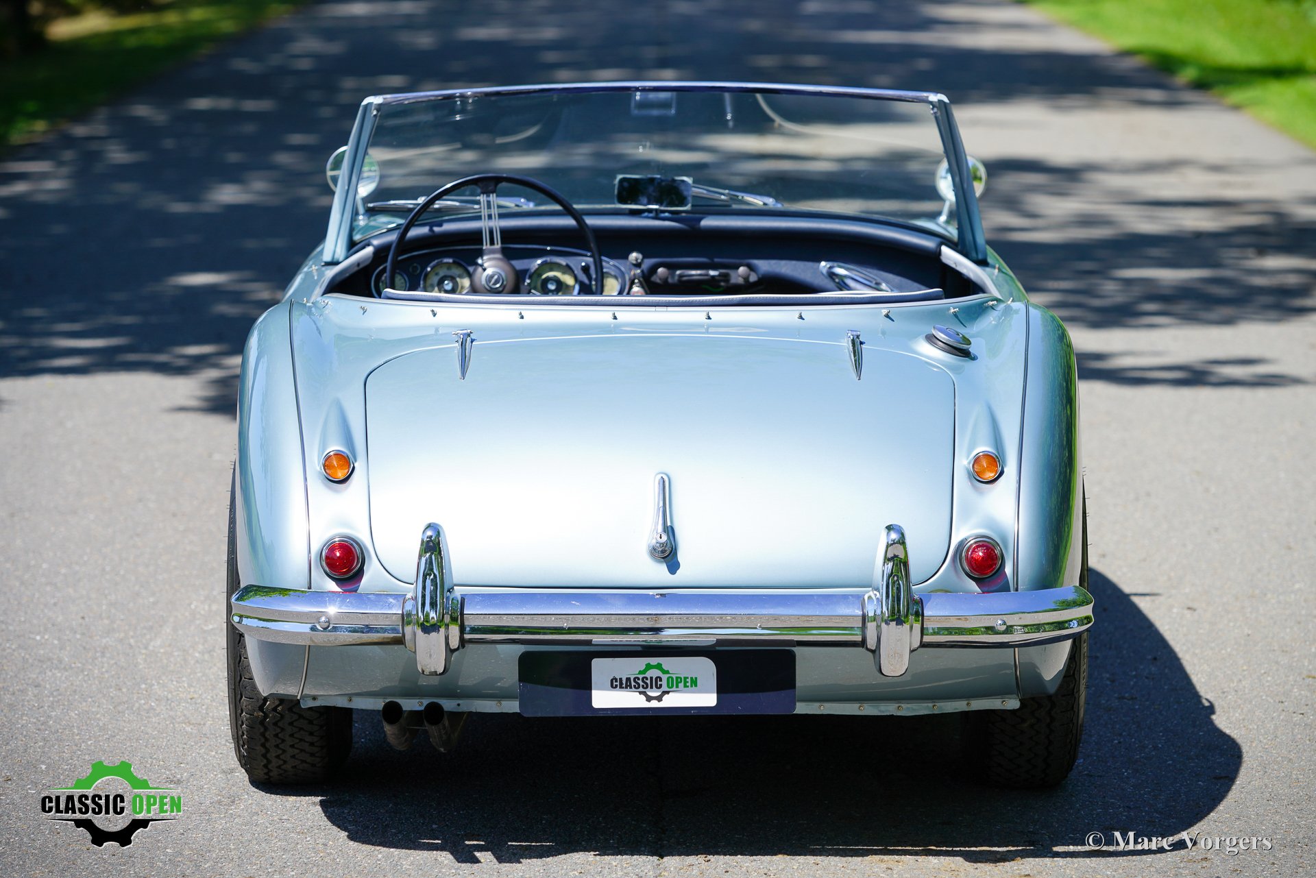 Om de auto een sportievere uitstraling te geven, werd de voorbumper verwijderd. Aan de voorzijde werden extra Lucas SLR700 “flame Thrower”-vérstralers geplaatst en de originele wielen werden vervangen door fraaie robuuste MiniLite-lichtmetalen velgen met Michelin XVS-banden. Dit is een prachtige en subliem rijdende klassieke Austin Healey.