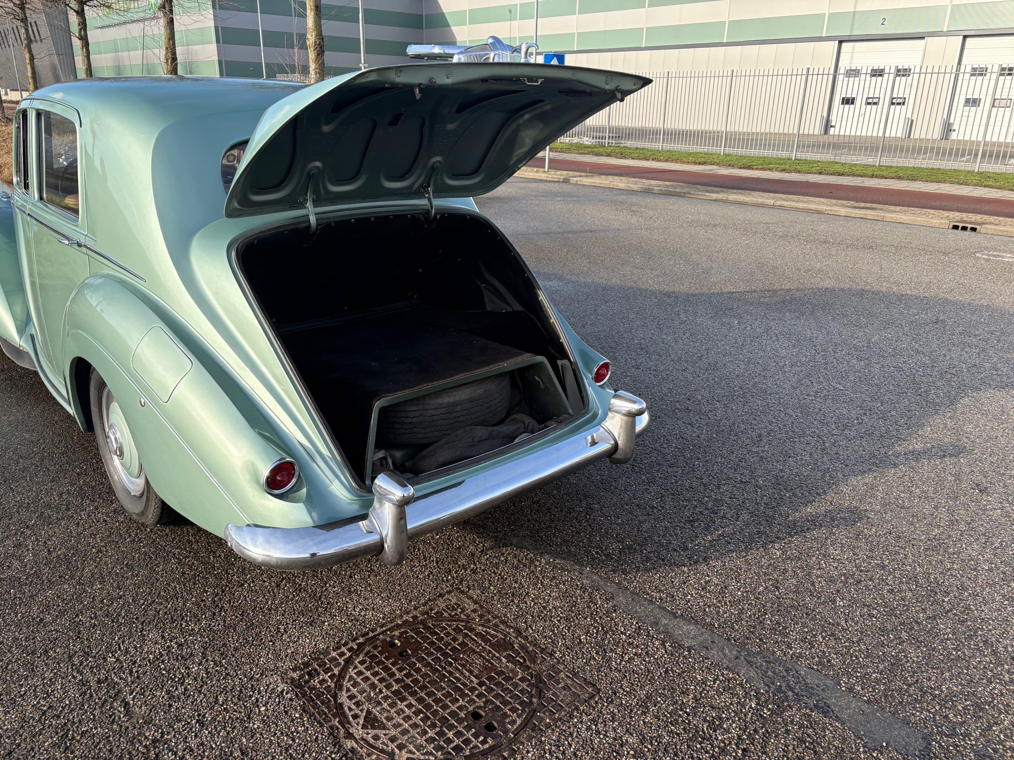 Het is een Standard Steel Saloon die voor de eerste eigenaar is voorzien van speciale Pyrene bumpers en extra Lucas mistlampen.