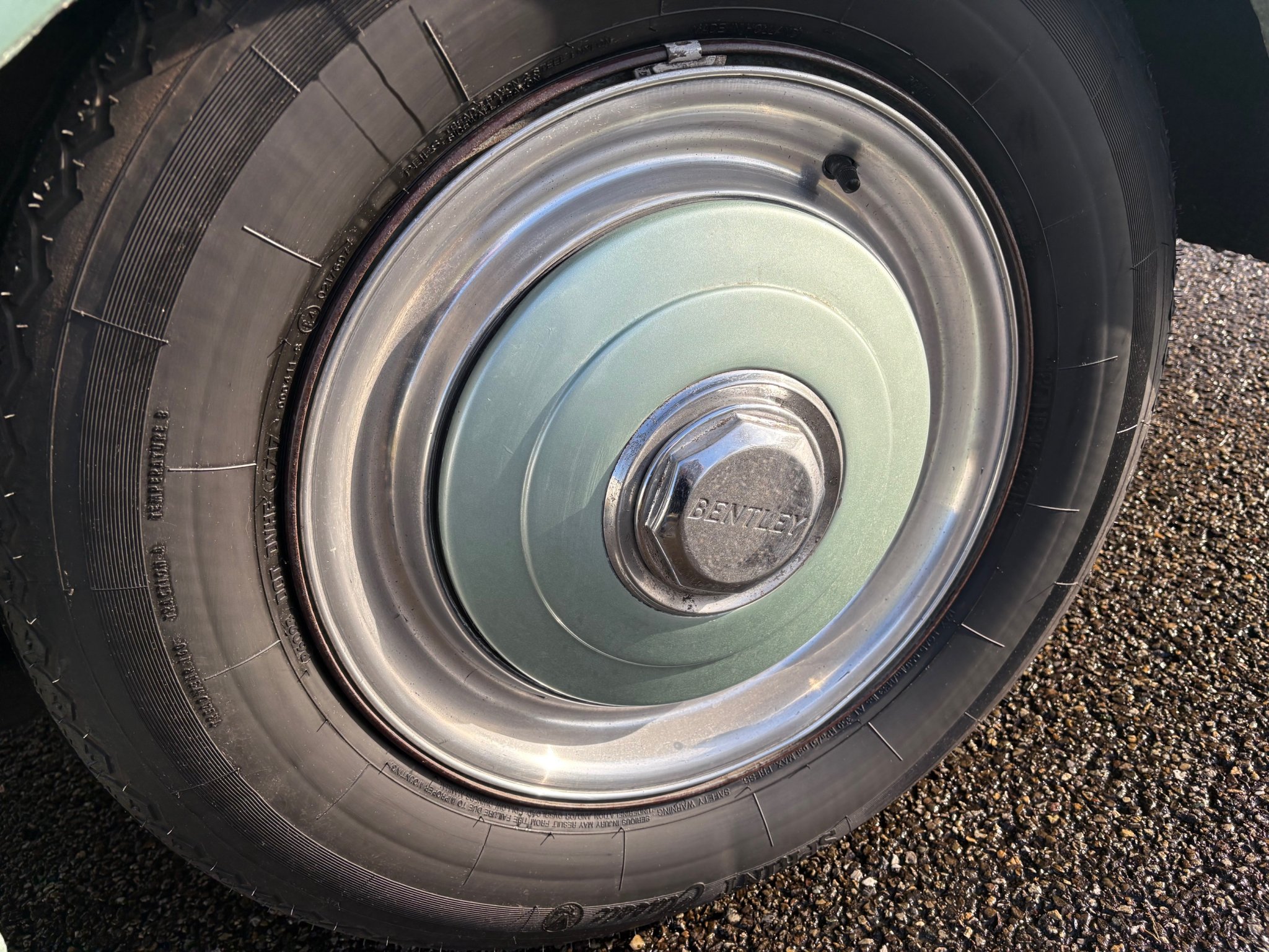 Deze Bentley werd ooit in Amerika opnieuw gespoten en dat is niet perfect, maar wel goed gedaan. Het geklonken chassis en de onderkant van de auto zijn niet behandeld en zeer origineel en gaaf.