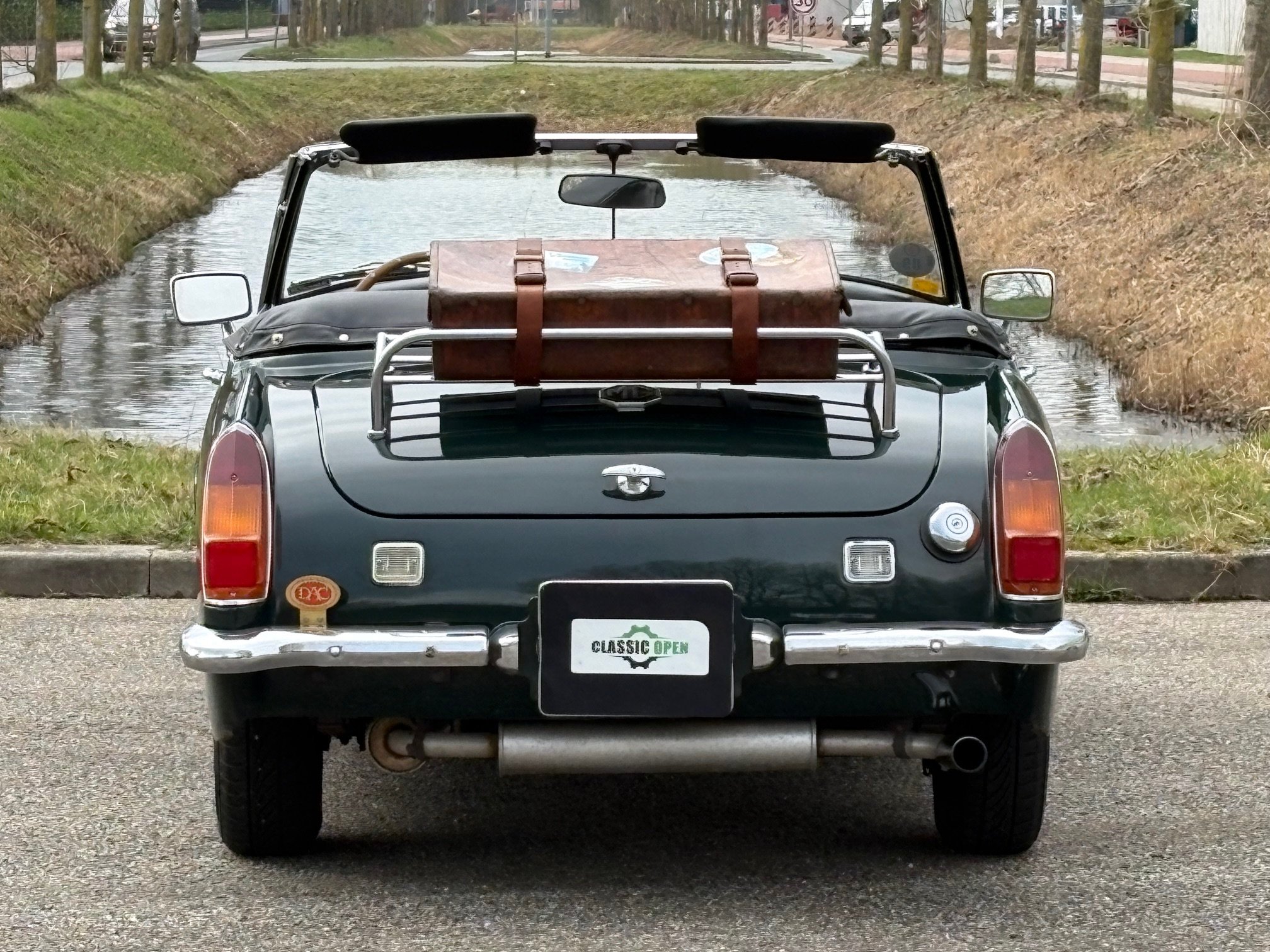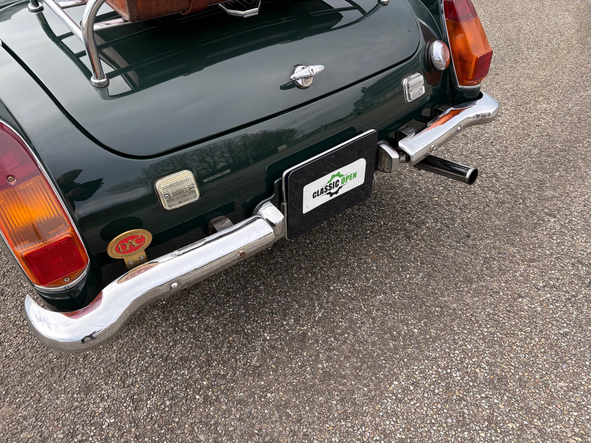 Opvallend aan deze MG Midget zijn de ronde wielkasten randen bij de achterwielen (RWA) en de 2 delige achterbumper.