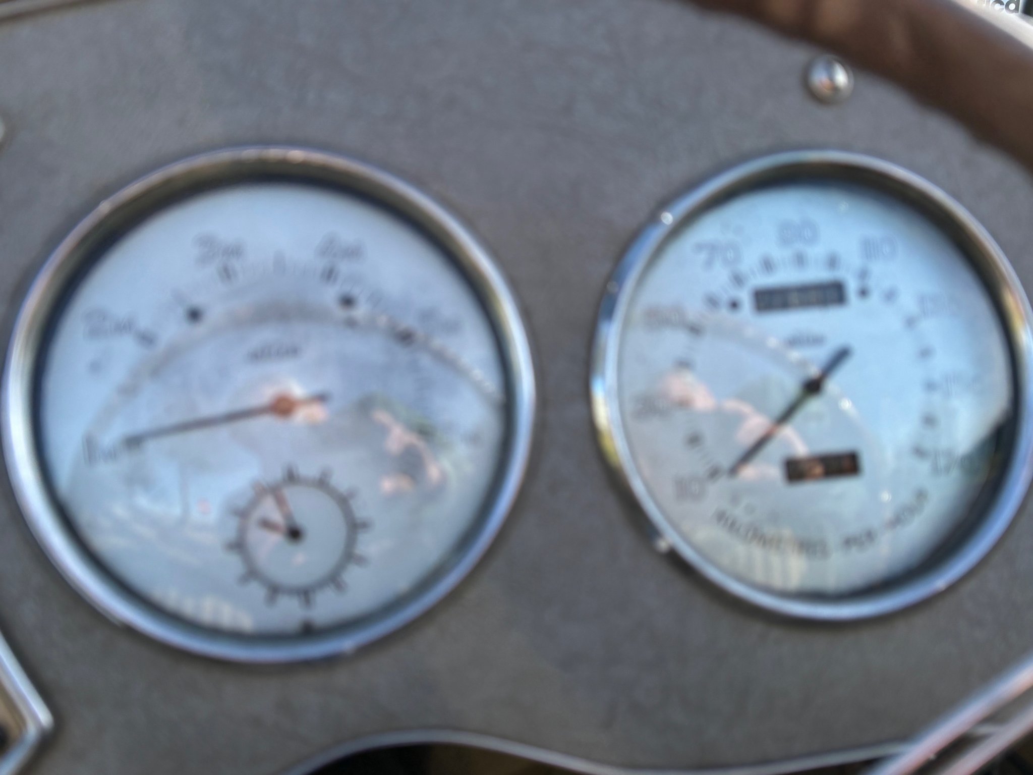 Er is geen benzine meter op het dashboard, daarvoor is er een houten lat waarmee we de inhoud van de tank kunnen meten. Eenvoudig en functioneel zoals klassiekers horen te zijn.