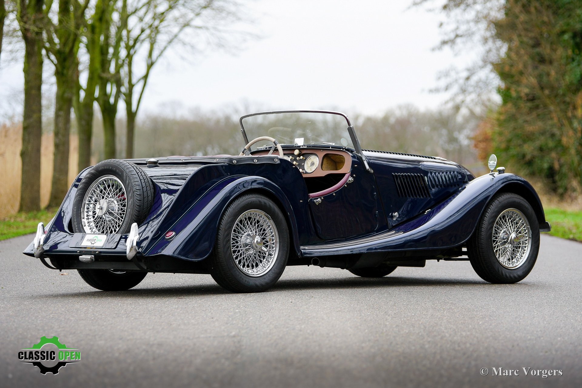 De auto is voorzien van een zwartkleurige ‘slechtweeruitrusting’ bestaande uit een soft-top, zijruiten met aluminium frames en een tonneauhoes.