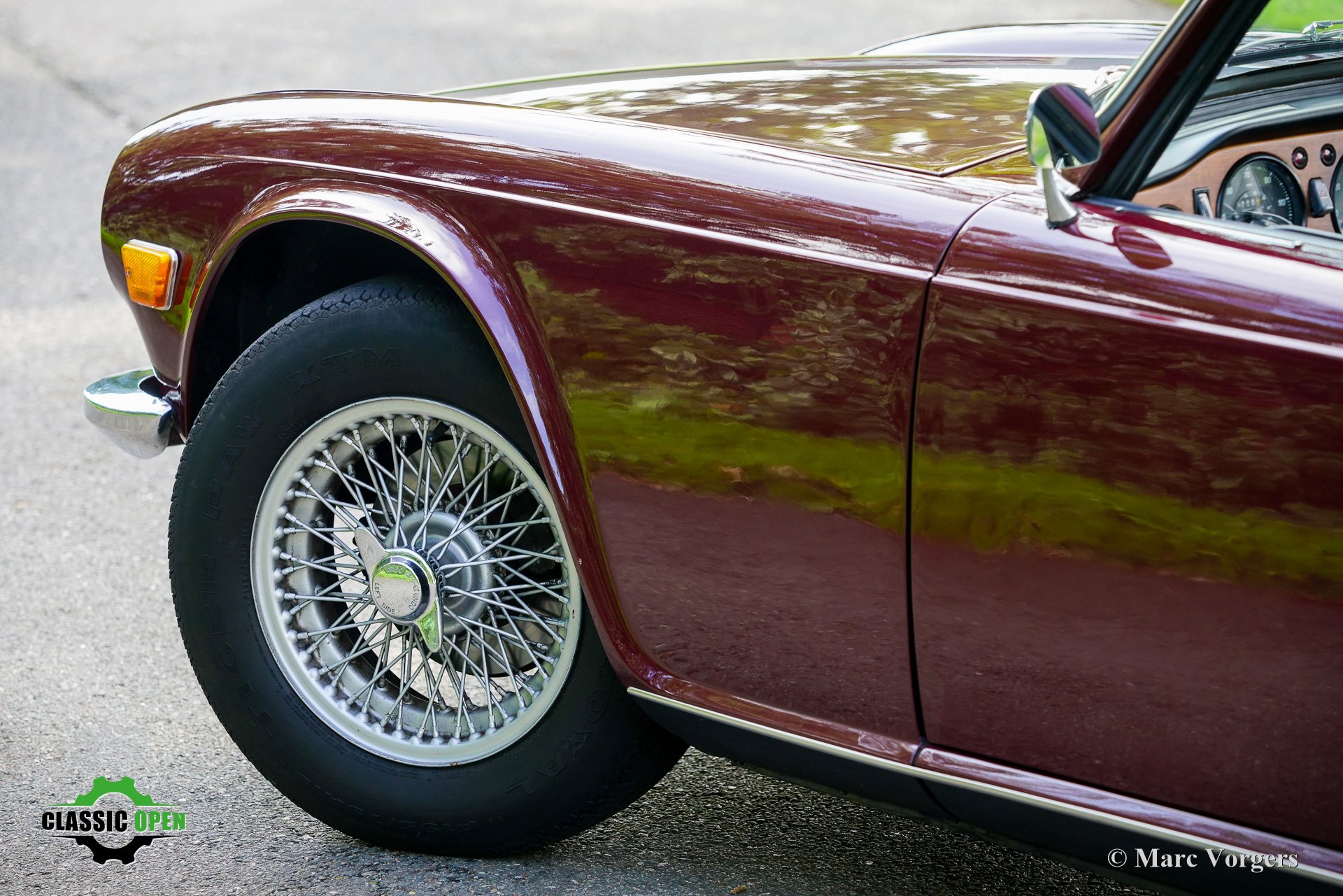 Deze Triumph TR6 is een zelden geziene vroege versie die unieke details heeft, zoals de veiligheidsstoelen met hoge hoofdsteunen, binnenverlichting op de tunnel, en het unieke